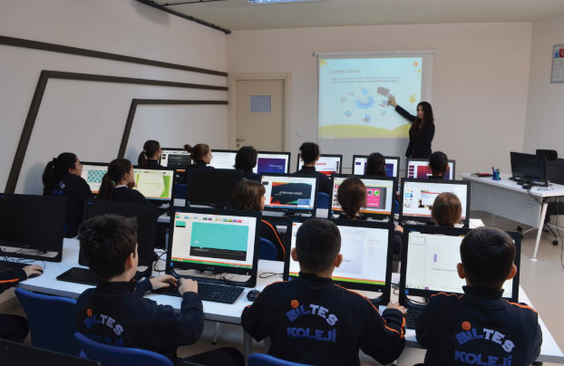 Günümüz şartlarında sürekli gelişen yeni iş kollarına uygun bireyler yetiştirmek amacıyla Biltes Kolejinde anaokulundan 7.sınıfa kadar kademeli olarak sınıf seviyesine uygun özel hazırlanmış eğitim programlarımızla öğrencilerimize temel bilgisayar eğitimi, bilgisayarlı, bilgisayarsız kodlama, tasarım, robotik, yazılım ve network eğitimleri verilmektedir.
